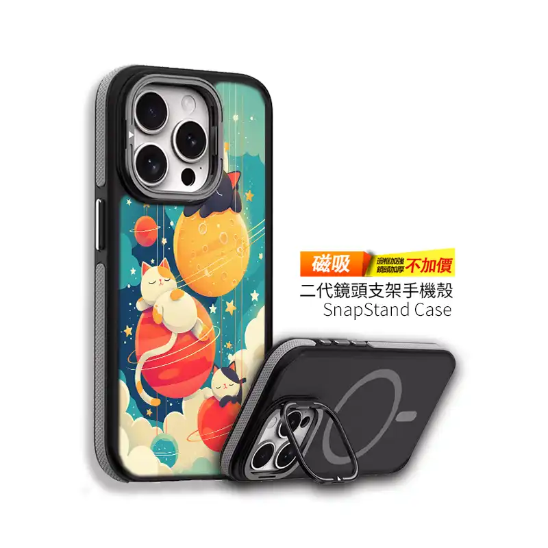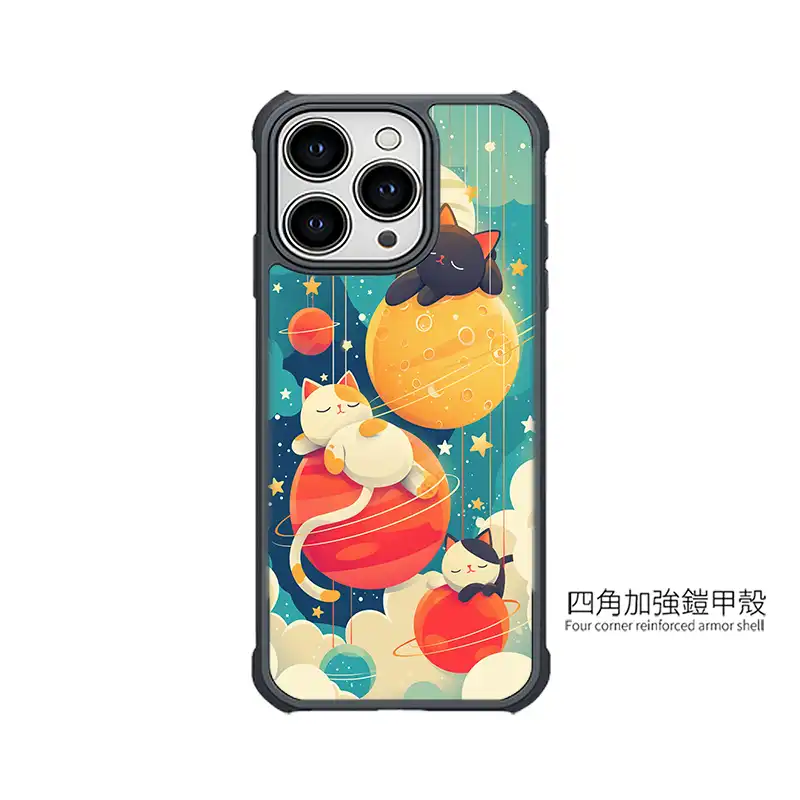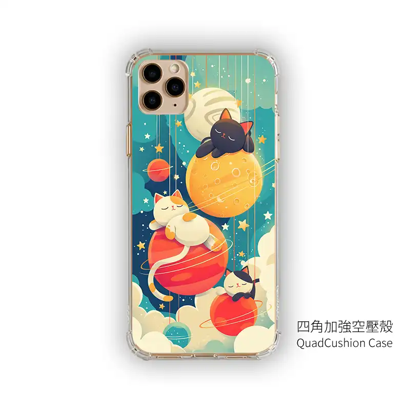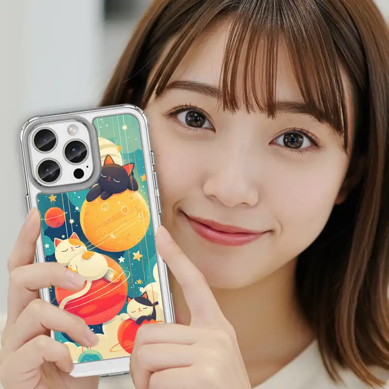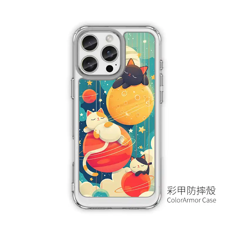 UV 高解析印刷:月面坑洞、行星環與喵咪睡臉都清晰飽和,久用不易掉色。