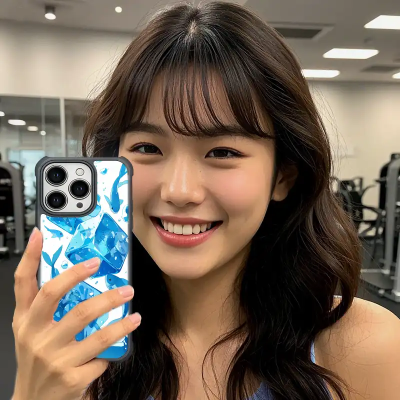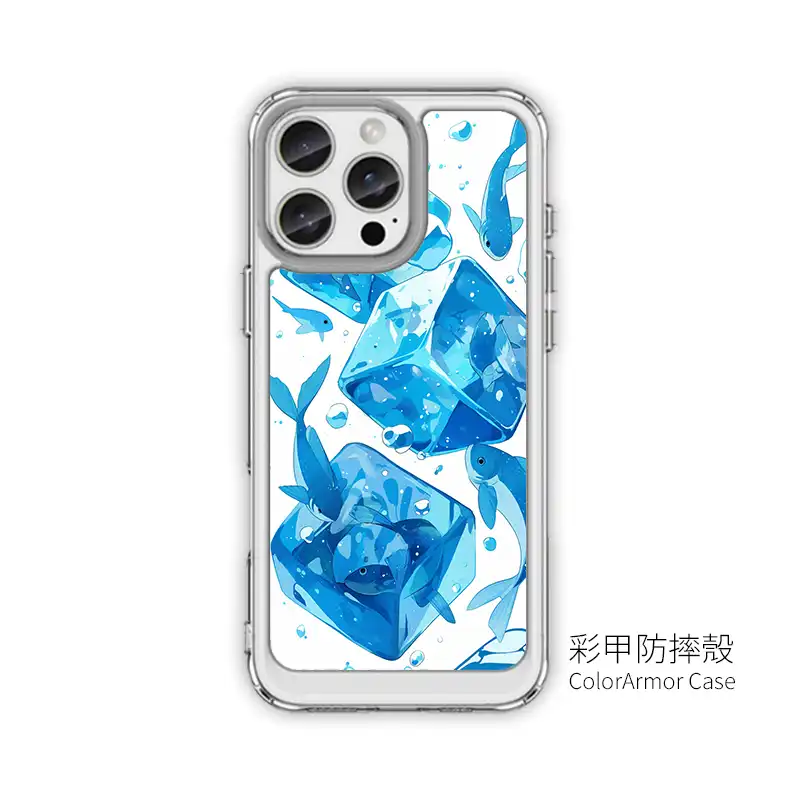 ✔ 高解析 UV 印刷 – 冰塊透亮感、魚群層次乾淨不混濁。