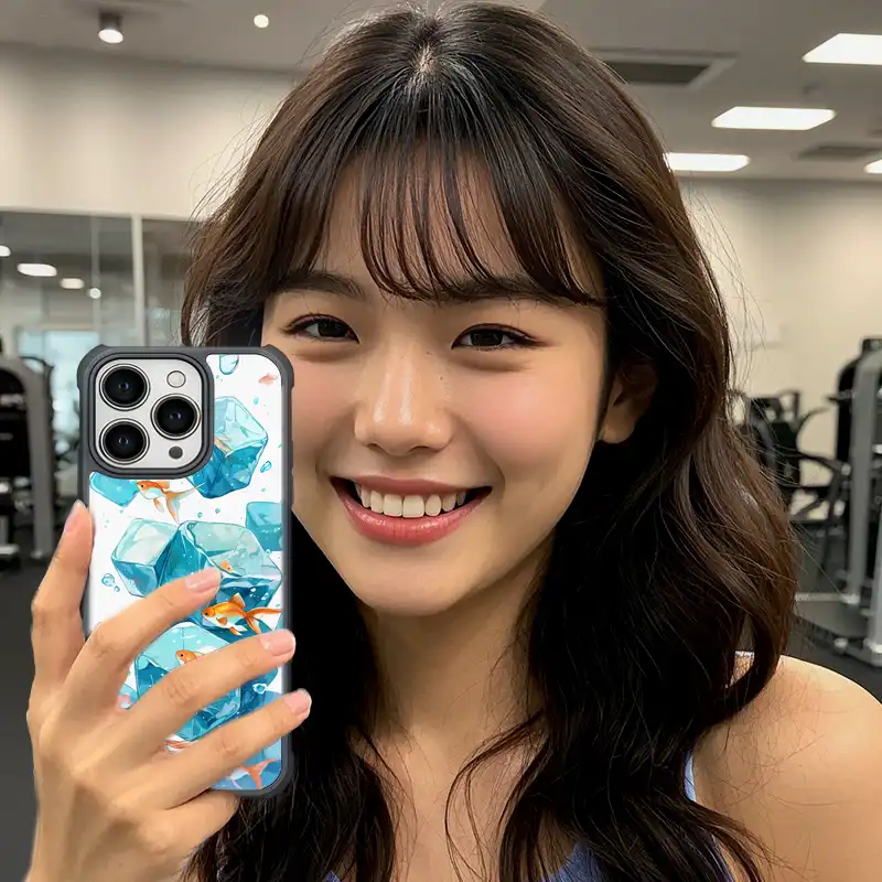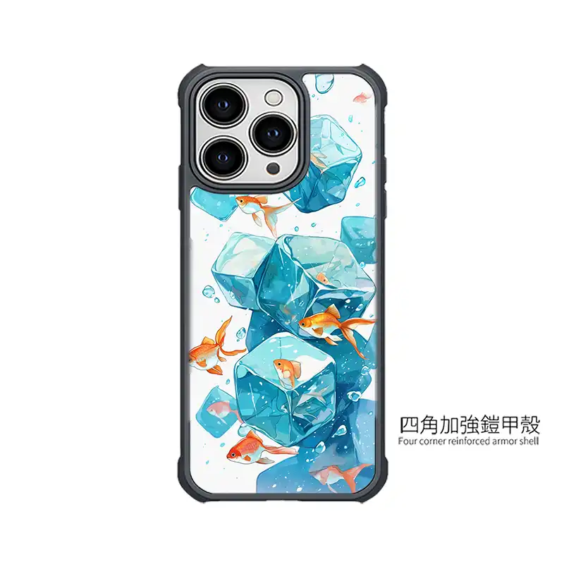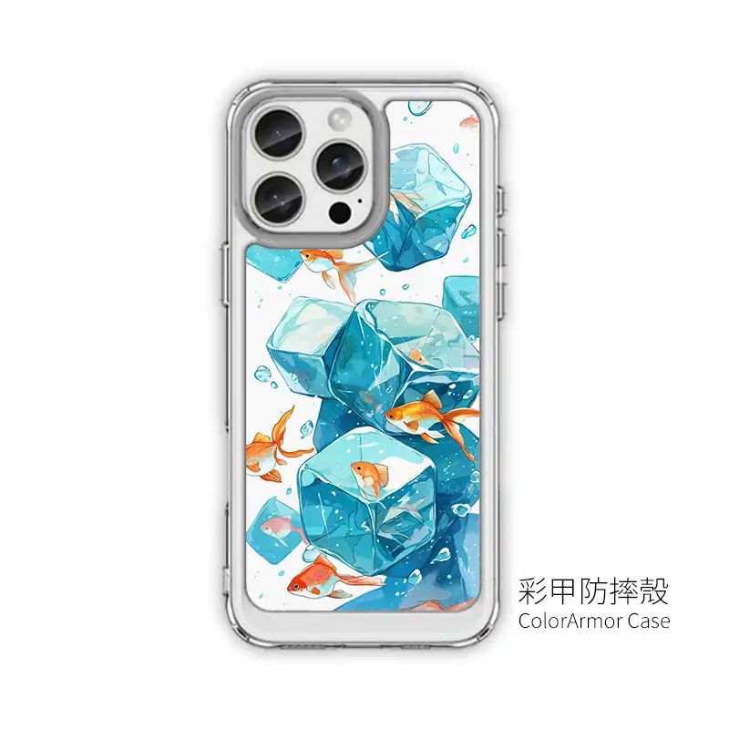 ✔ 高解析 UV 印刷 – 冰塊邊緣、水花與金魚魚鱗都能清晰呈現,不模糊、不失真。