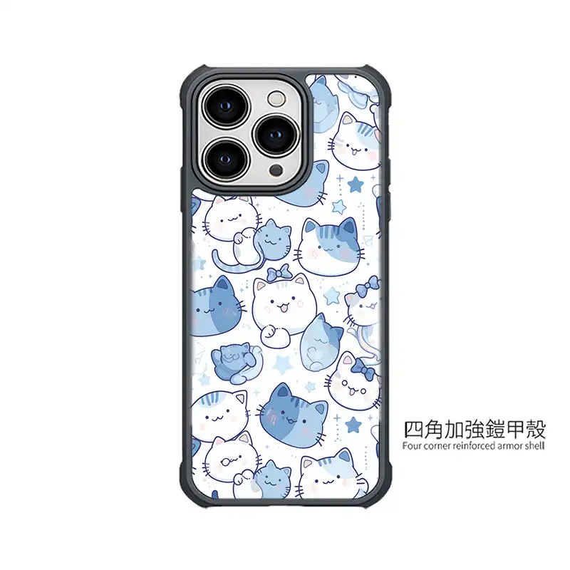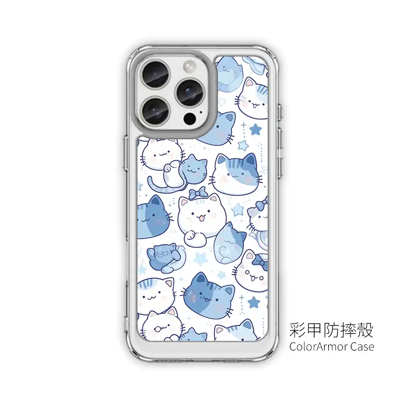 《藍調喵喵樂園》CUTE173 以「Blue Kitty Doodle Party」為主題,各種姿勢的喵星人排排站:有睡覺、伸懶腰、裝可愛、賴在地上的,每一隻都圓滾滾、表情超療癒。藍白色調搭配星星與小圖案,乾淨又俏皮,超適合貓奴使用的 iPhone 手機殼。PPBears 創意PP熊 提供上千款手機型號的 客製化手機殼,從透明防摔款、鏡頭支架款到防滑防摔款,都能把《藍調喵喵樂園》CUTE173 的可愛喵群印得飽滿又清晰,是喜歡貓咪插畫風格的最佳 手機殼推薦。