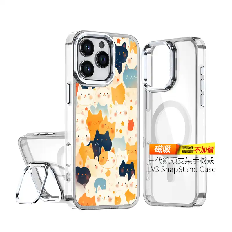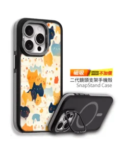 搭配 **二代鏡頭支架 SnapStand 設計+MagSafe 磁吸功能**,追劇、視訊、滑社群都能一秒立起,是貓奴必收的機能系 手機保護殼