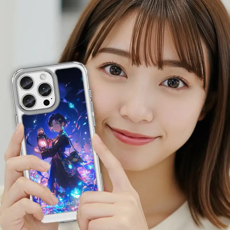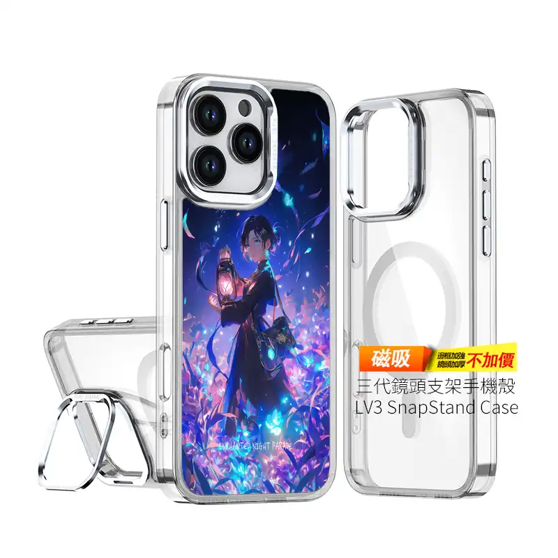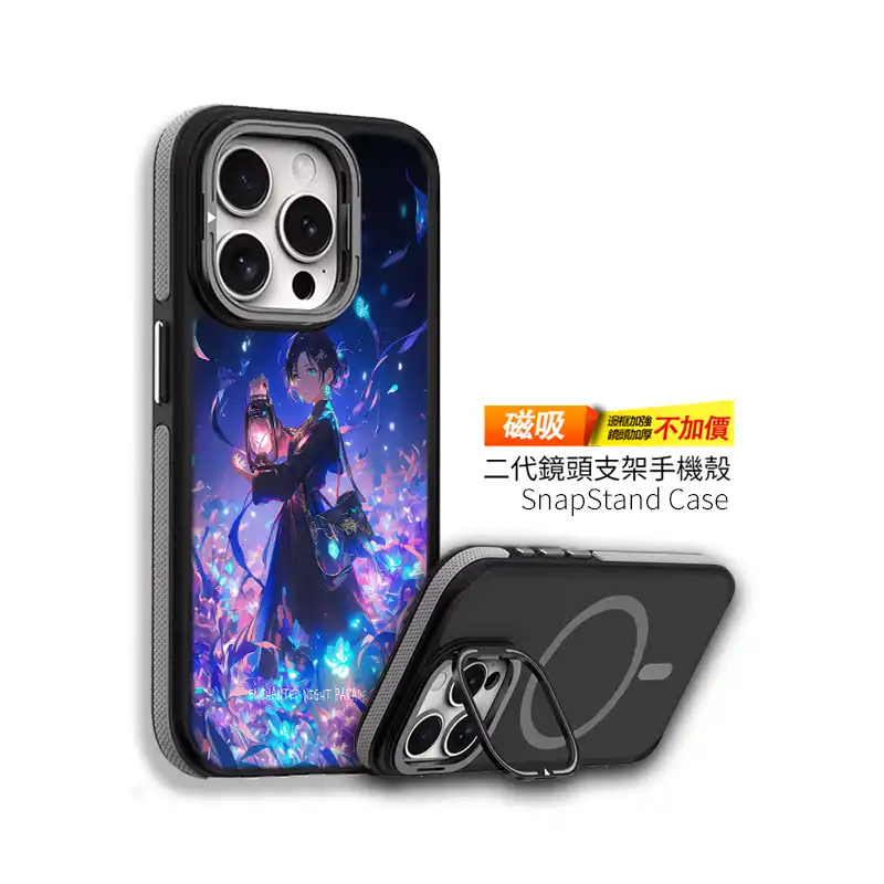 高透 PC 透明背板 不易黃化,完整保留光粒與髮絲細節;四角強化吸震。【鏡頭支架系列|機能美學 客製化手機殼】