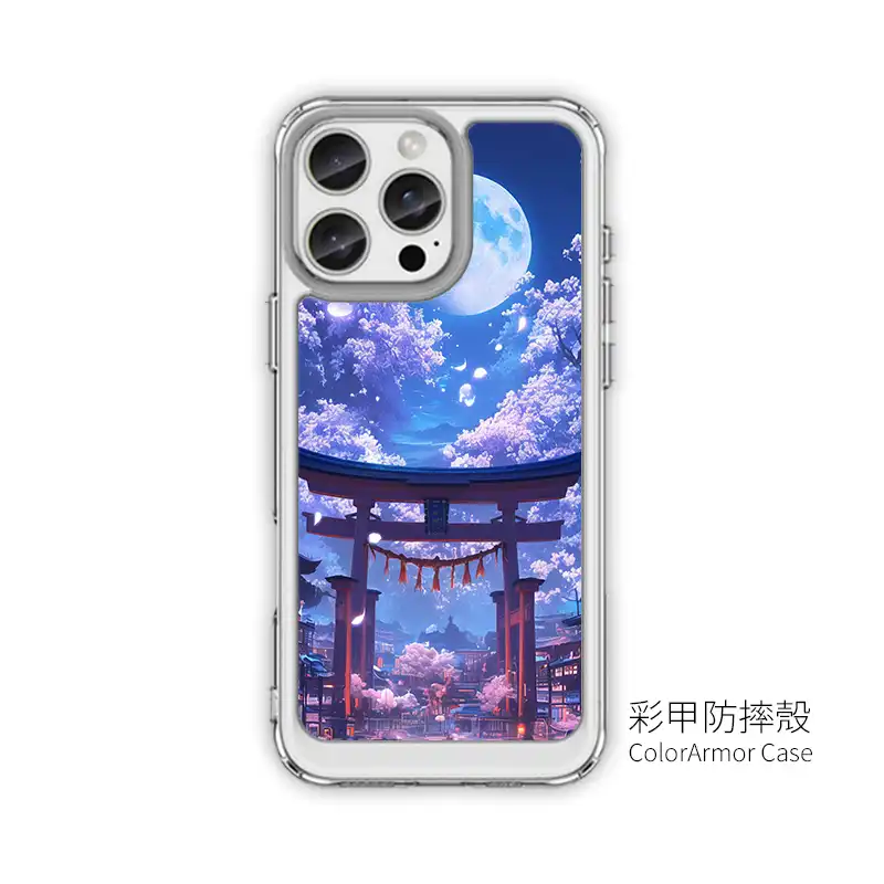 《月夜櫻町》L103 以「Moonlight Sakura Street」為主題,滿月高掛夜空,兩側街道點起柔和燈光,鳥居與滿開櫻花在藍紫色的月光下閃閃發亮。整體是濃濃日系幻想風,拿在手上就像把一幕動畫電影放進 iPhone 手機殼 裡。PPBears 創意PP熊 提供上千款手機型號的 客製化手機殼,從透明防摔款、鏡頭支架款到防滑防摔款,都能完美呈現《月夜櫻町》L103 的夜景層次,是喜歡日系插畫風的 手機殼推薦 首選。
