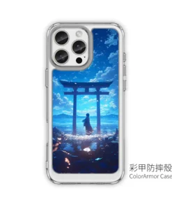 《蒼穹海門》L104 以「Ocean Gate to the Sky」為主題,海面上矗立的鳥居像是一扇通往另一個世界的門,遠方山巒與雲層在藍色天空下交錯,一位身影佇立在岸邊,畫面靜謐又充滿想像空間。這款插畫非常適合喜歡療癒、旅行感的 iPhone 手機殼。PPBears 創意PP熊 提供上千款型號的 客製化手機殼,從透明防摔款、鏡頭支架款到防滑防摔款,都能把《蒼穹海門》L104 的藍色層次完整呈現,是文青系海景 手機殼推薦 之一。