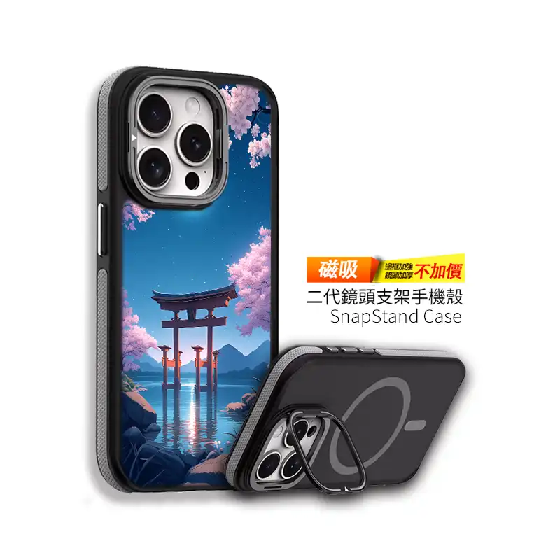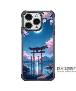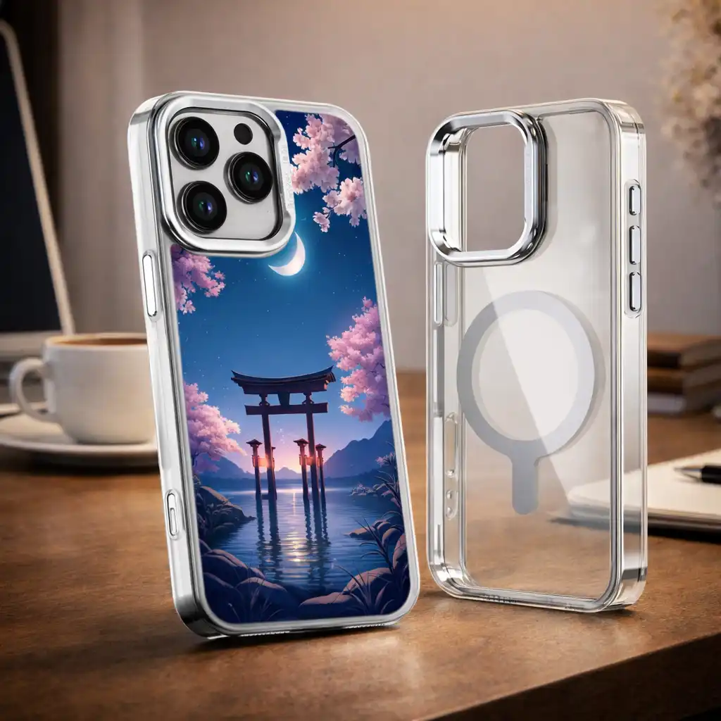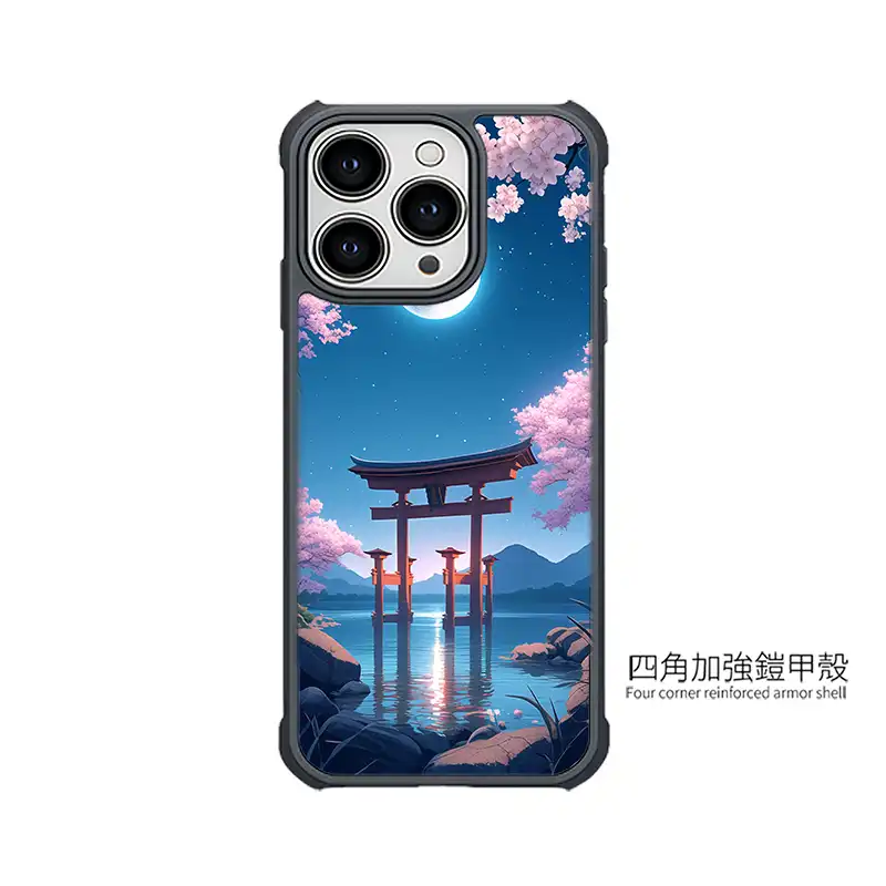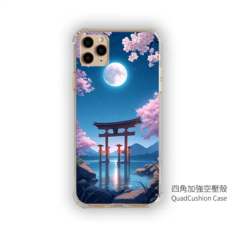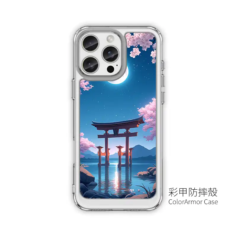《月櫻湖門》L105 以「Moonlit Sakura Lake Gate」為主題,彎月掛在深藍夜空,滿開櫻花從畫面上方垂落,湖面倒映著鳥居與遠方山巒,微光在水面上閃閃發亮。整體是柔和又帶點夢幻的日系插畫風,拿在手上就像把一幕動畫場景放進 iPhone 手機殼 裡。PPBears 創意PP熊 提供上千款手機型號的 客製化手機殼,從透明防摔款、鏡頭支架款到防滑防摔款,都能完整呈現《月櫻湖門》L105 的色彩層次,是喜歡櫻花夜景風格的 手機殼推薦 首選。