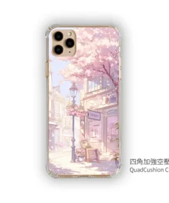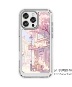 《櫻花光影小巷》L108|櫻花巷弄 × 浪漫街景插畫風 客製化手機殼,把最喜歡的咖啡散步路線裝進掌心