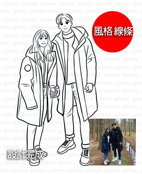 【請一定要詳看要繪製的模板,決定後風格無法更換,一開始的溝通確定很重要喔。】1.人物卡通化不包括背景,背景可另外選擇套用。 2.卡通化只會依照原圖繪製,不會增加沒有的東西,有其他需求需要事先告知,無法繪製完成後再增加。 3.人物卡通畫無實體商品,完成後有去背景電子檔PNG高解析度檔案,原始檔案有畫師畫技專利無法提供。 4.付款完成後【1-3】個工作天會有設計圖確認。 5.設計修改需要耗用大量工時,需要修改的部分請一次提出,超出【3次】修改後每次修改需加收100元(次)超額工時設計費喔。 6.修改圖片只限定最後溝通確認後設計(包含動作、飾品、穿著、風格),需變更照片與姿勢與風格等於重新畫不同的圖,會有新的工時費用喔。 7.初稿完成後需要修改部分,會依照畫師的時間安排,約1-3個工作天內會再給圖確認喔。 8.設計師以工時計費,確定風格後繪製是無法更換設計師,請確實看過畫師作品集後,確認這是自己要的在下單喔。【相似度問題】 ❶寫實版有高相似度,但無法變更動作。 ❷Q版設計相似度較低,將會依照來圖的衣物穿著動作辨識,繪製將畫師本身風格製作,下單的風格無法用別畫師風格的來組合繪製。 ❸Q版設計可以指定動作表情繪製。【著作權】 ❶畫師創作作品,著作權依舊為畫師所有。 ❷委託創作購買者可享有【完全使用權】, (包含商業商品製作、註冊商標使用)【個人資料保護法】 1.提供的圖片需要有當事人同意。 2.製作的商品對當事人權益無侵害。 3.有利於當事人權益。 我們基於信任,假設委託人已經取得當事人同意。然而如果委託人若造成當事人的損害,這可能會導致法律上的損害賠償或刑事訴訟。委託人需要自行承擔全部法律責任,與創意PP熊無關。如果因此給創意PP熊造成任何損失,我們將採取民事索取賠償措施。】●【專屬設計訂製將無償提供廣告作品集使用,熊窩保證設計不二次使用,收到商品好評價後贈送超值禮品,不同意必須提前告知則無禮品,下單後視為同意提供熊窩行銷使用。】【畫師是以工時計價,同意開始設計後將無法退款喔!!】 【委託設計之前請先看完該畫師的作品集喔】 【請詳細閱讀條款避免後續發生爭議】