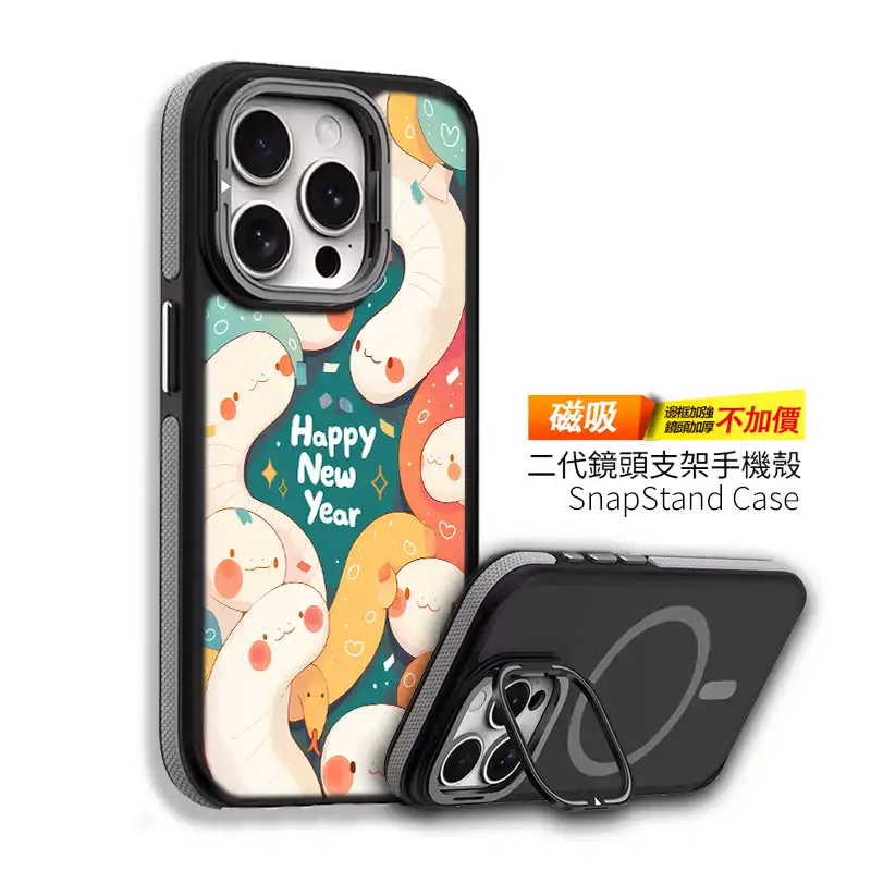 設計靈感:源自日常使用需求,將「鏡頭保護」與「可收納支架」結合,當鏡頭保護蓋掀起時,即化身為三角形穩固支架,輕鬆釋放雙手,無論追劇、視訊會議或自拍都能隨心調整角度。